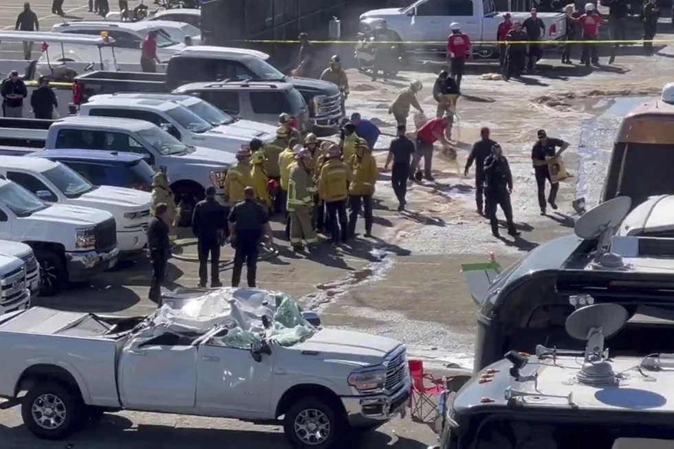 Fotos y videos del lugar mostraron a bomberos y otros equipos trabajando en un área de estacionamiento junto a la pista, donde los vehículos estacionados parecían dañados.