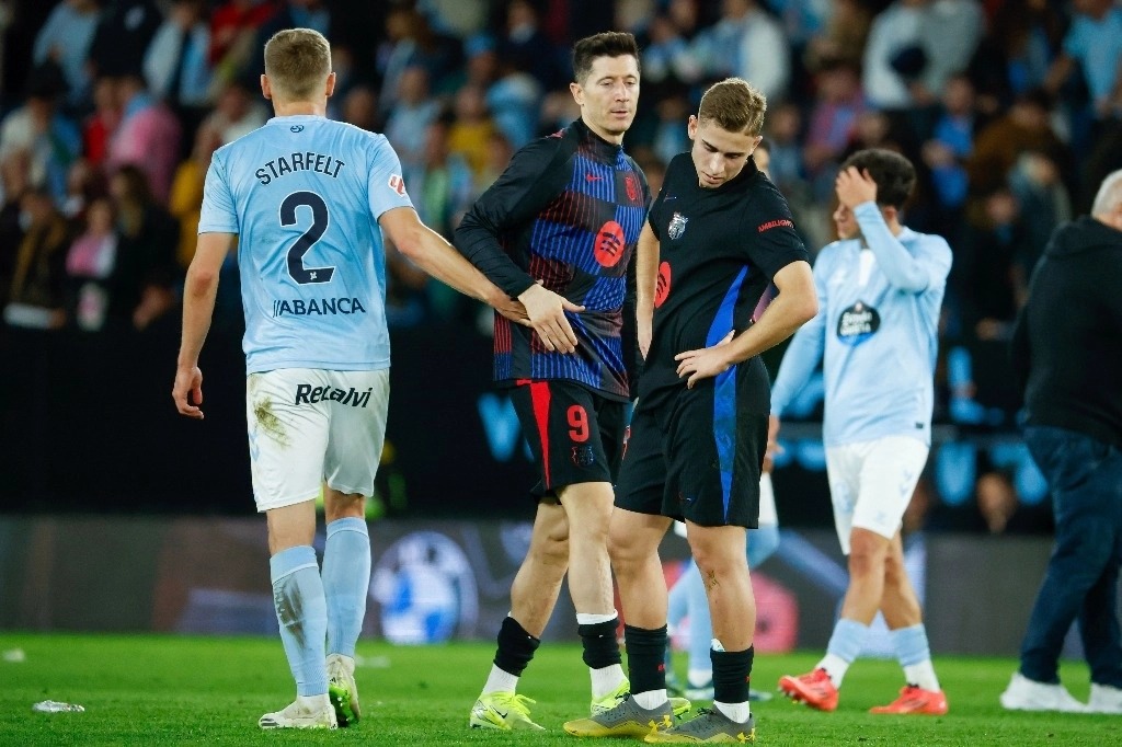 El FC Barcelona empató (2-2) ante el RC Celta este sábado en la jornada 14 de LaLiga EA Sports celebrada en el Estadio Abanca Balaídos, una papeleta complicada que pareció resolver el líder con Robert Lewandowski y Raphinha pero que dio un giro más a cinco minutos del final con una expulsión y dos goles locales.