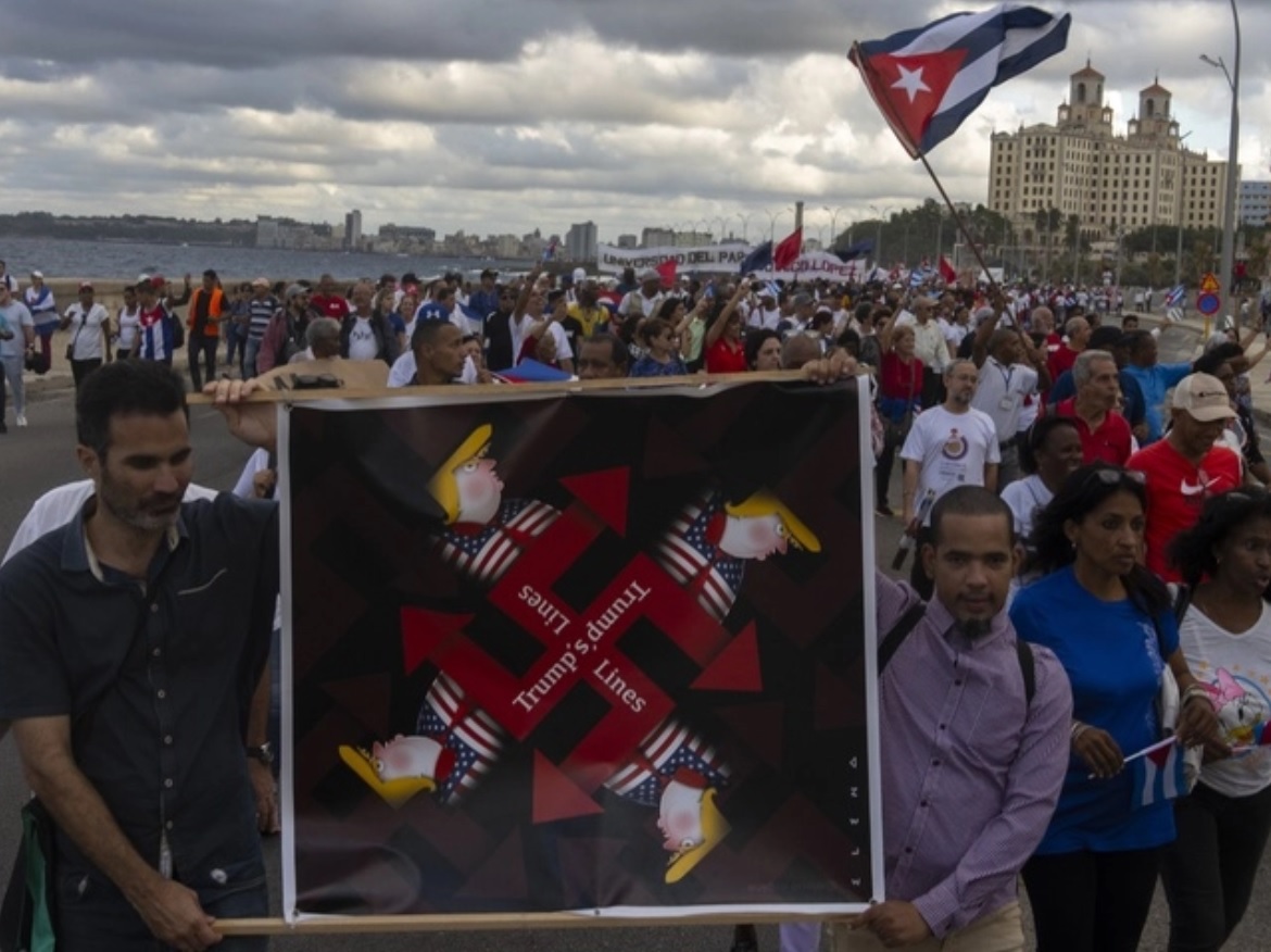 “Marchamos ya para decir al gobierno de Estados Unidos: ¡dejen al pueblo cubano vivir en paz! Abajo la injerencia, abajo el bloqueo, abajo las medidas coercitivas unilaterales contra Cuba”, dijo el mandatario, desde una tarima ubicada a un costado de la Embajada de Estados Unidos, ante una multitud que se aprestaba a desfilar por el Malecón habanero.