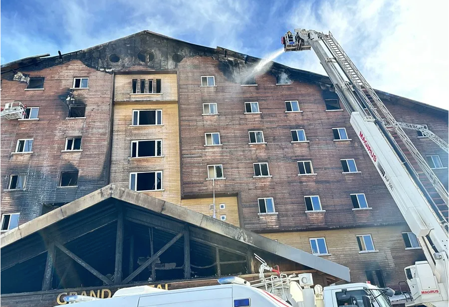La construcción en madera y la situación del hotel al pie de una pista de esquí, que solo permite el acceso de vehículos desde la fachada frontal, dificultaron la intervención de los bomberos, explicó el periódico turco.
