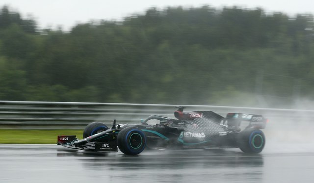 Considerado el mejor piloto bajo la luvia, Hamilton, que esta temporada aspira a igualar el récord de siete títulos mundial de Michael Schumacher, dominó la jornada, en condiciones difíciles, con 1 segundo y 216 milésimas de ventaja sobre el holandés de Red Bull Max Verstappen.
