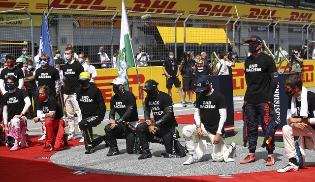 Los pilotos de Fórmula 1 que habían puesto la rodilla en tierra contra el racismo el domingo pasado reprodujeron su gesto en la parrilla de salida del Gran Premio de Estiria.