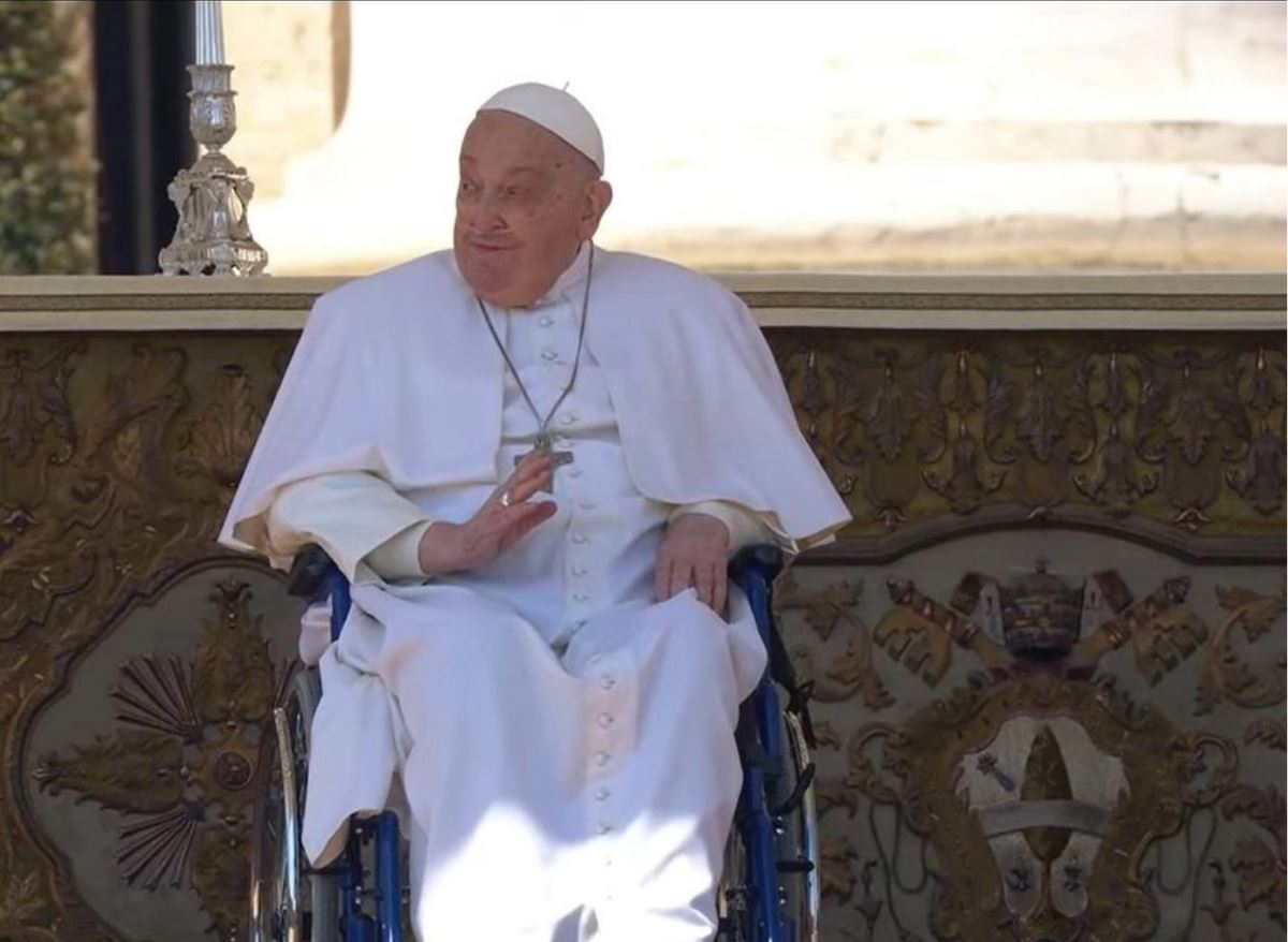 En la bendición dominical tradicional, el pontífice argentino agradeció a los fieles por sus oraciones. "En este momento de debilidad física, me ayudan a sentir aún más la cercanía, la compasión y la ternura de Dios". Por novena semana, incluida su hospitalización de cinco semanas que comenzó el 14 de febrero, la bendición se difundió por escrito.