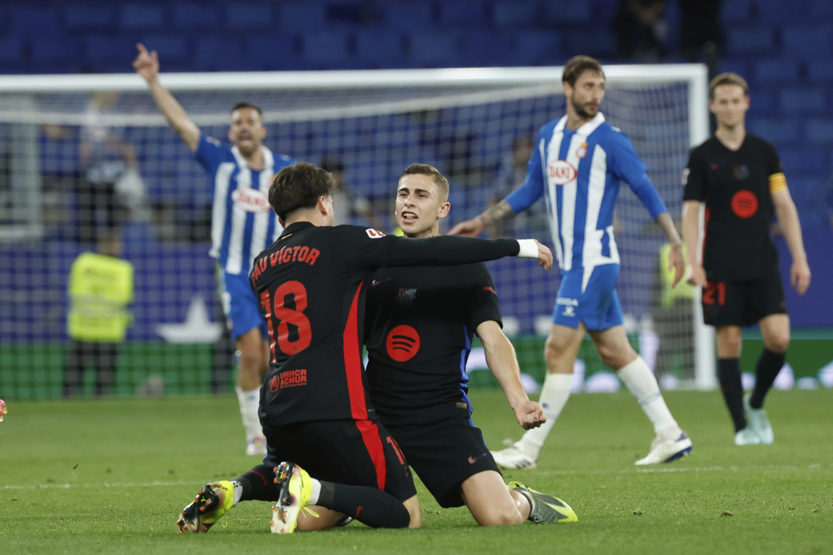 Fermín López anotó en el tiempo de descuento después de que el Espanyol quedó con diez hombres a los 80 minutos por la expulsión del zaguero uruguayo Leandro Cabrera con una roja directa por golpear a Yamal en el estómago mientras disputaban un balón.