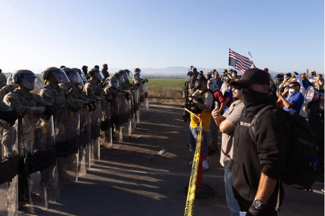 Durante la redada, multitudes de personas se reunieron afuera de Glass House Farms en la ubicación de Camarillo para exigir información sobre sus familiares y protestar contra la aplicación de la ley de inmigración. Se desató una escena caótica afuera de la granja que cultiva tomates, pepinos y cannabis mientras las autoridades, vestidas con cascos y uniformes, se enfrentaban a los manifestantes. Un humo acre verde y blanco obligó a los miembros de la comunidad a retirarse.