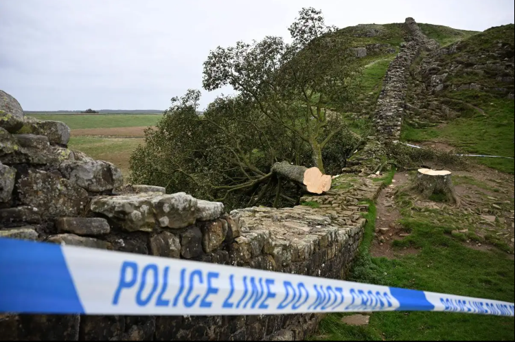 La caída del árbol dañó el muro de Adriano, de 135 km de longitud, construido entre los años 122 y 127 de nuestra era y declarado Patrimonio de la Humanidad por la Organización de las Naciones Unidas para la Educación, la Ciencia y la Cultura (Unesco).
