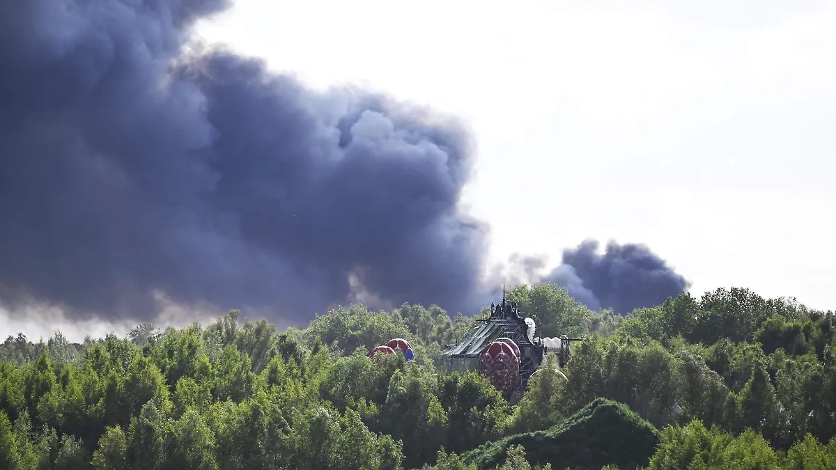 Los videos compartidos en las redes sociales y las fotografías publicadas en la prensa local muestran grandes llamaradas emergiendo del lado izquierdo del escenario y un espeso humo gris en el área circundante.