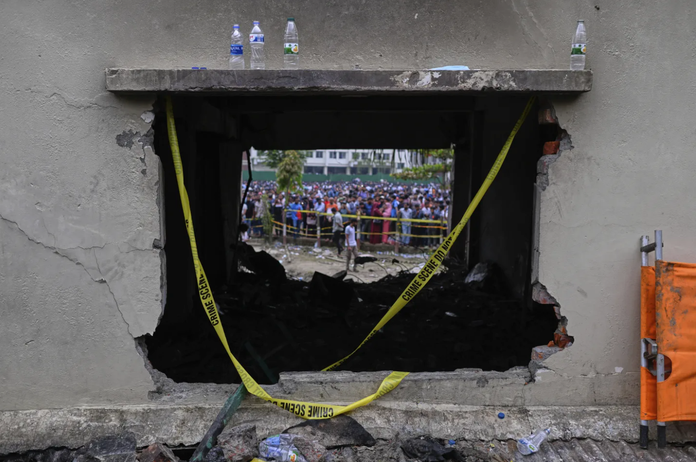 l accidente de un avión de entrenamiento de la Fuerza Aérea de Bangladesh que se estrelló contra una escuela en la capital del país, exigiendo rendición de cuentas, compensación para las familias de las víctimas y la suspensión de los vuelos de instrucción.