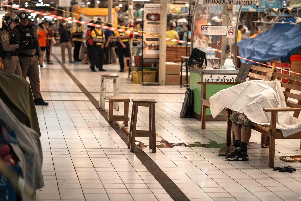 Entre las víctimas se encuentran cuatro guardias de seguridad en el mercado Or Tor Kor en el norte de Bangkok, según un comunicado de la policía. También se informó que un vendedor fue asesinado y que otras dos personas resultaron heridas.