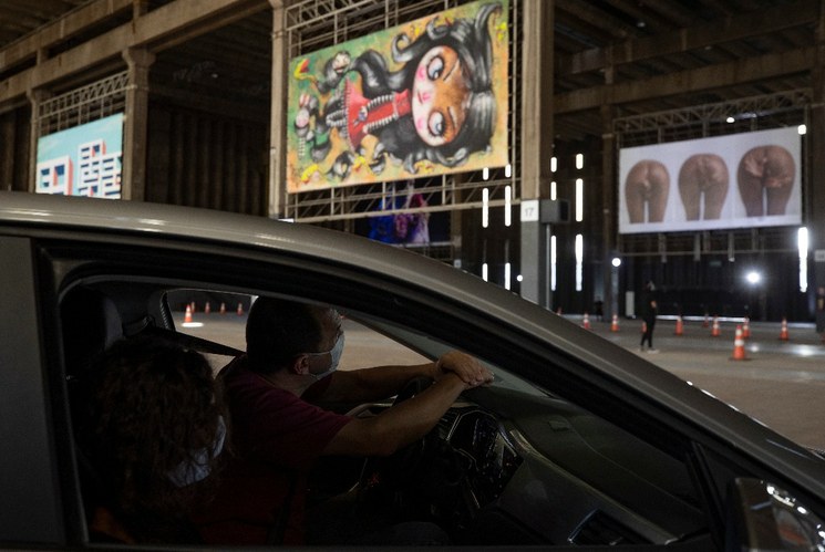 Con las galerías y museos cerrados debido a la pandemia del coronavirus, el propietario de una galería de arte en Sao Paulo decidió adaptar la cultura de los autocinemas a las artes visuales e inauguró una exposición que puede disfrutarse sin bajar del auto.
