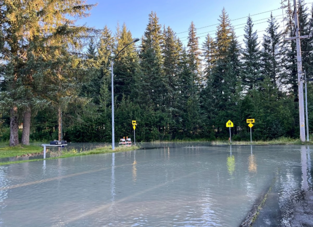 Las casas en las afueras de la ciudad están a pocos kilómetros del lago Mendenhall, que se encuentra debajo del glaciar, y muchas están frente al río Mendenhall, en el cual está fluyendo la descarga glaciar.