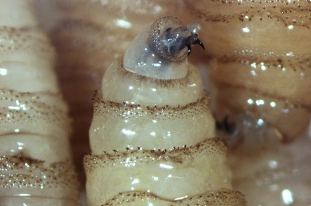 Conocida bajo el nombre científico de Cochliomyia hominivorax o Mosca en forma de tornillo devoradora de hombres, este insecto busca animales de sangre caliente con heridas abiertas y allí deposita sus huevos. Luego, al eclosionar, sus larvas comienzan a alimentarse del tejido. Si no se trata puede generar graves heridas, la pérdida de la función del órgano parasitado e incluso la muerte, especialmente si ataca a recién nacidos.