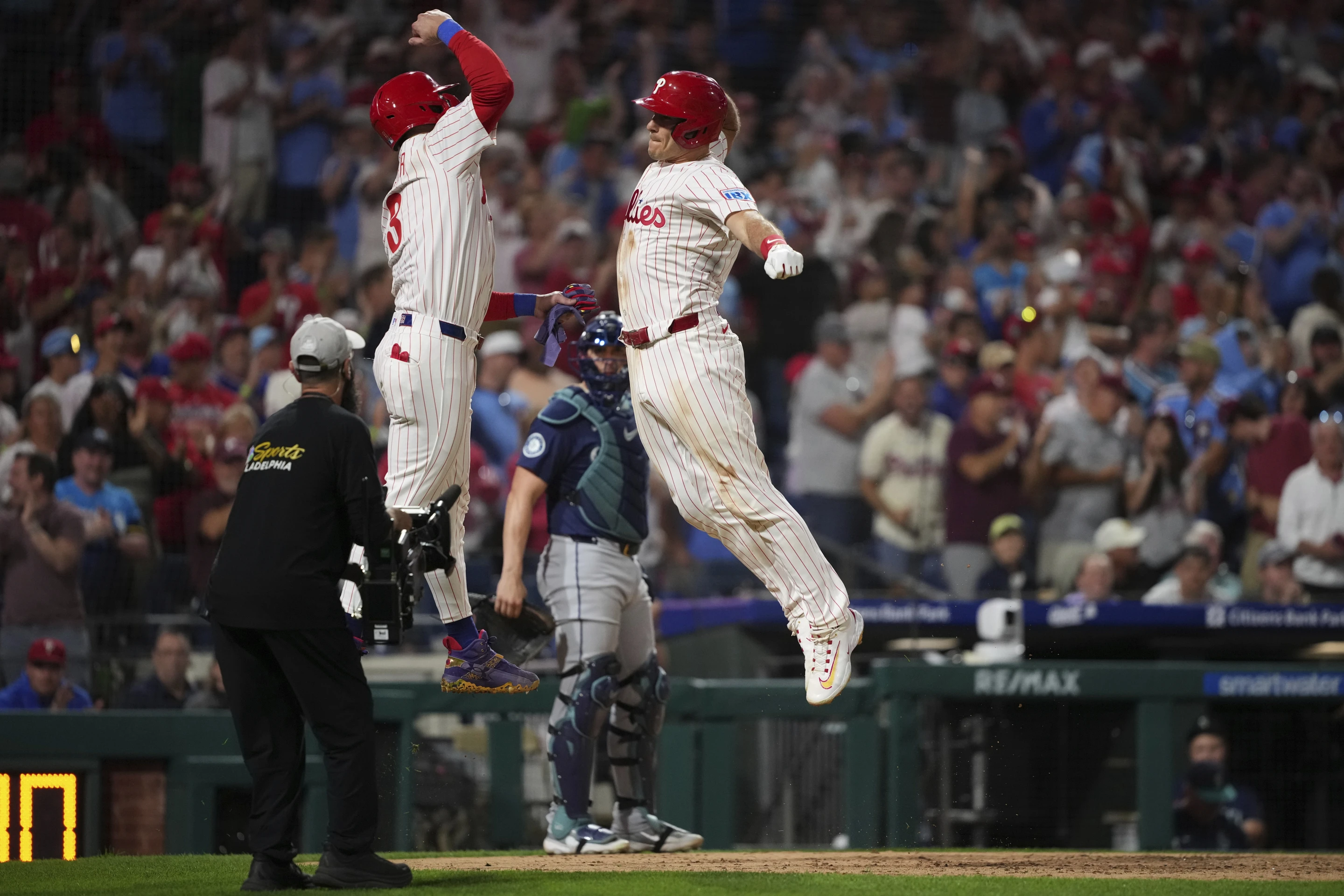 En Filadelfia, J.T. Realmuto bateó un cuadrangular de dos carreras en la octava entrada, Kyle Schwarber y Bryson Stott también se volaron la barda y los Filis derrotaron 6-4 a los Marineros de Seattle, que están en zona de clasificación a playoffs.