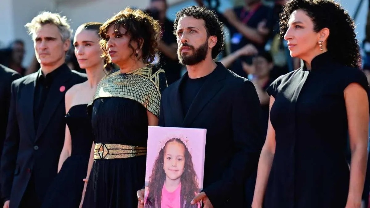 La alfombra roja del Festival de Venecia se tiñó este miércoles de luto en el estreno de la película The voice of Hind Rajab, sobre el asesinato de una niña palestina en un ataque israelí, y su reparto desfiló vestido de negro y con una foto de la pequeña, acompañado por parte de los productores ejecutivos, entre ellos los actores Rooney Mara y Joaquin Phoenix.