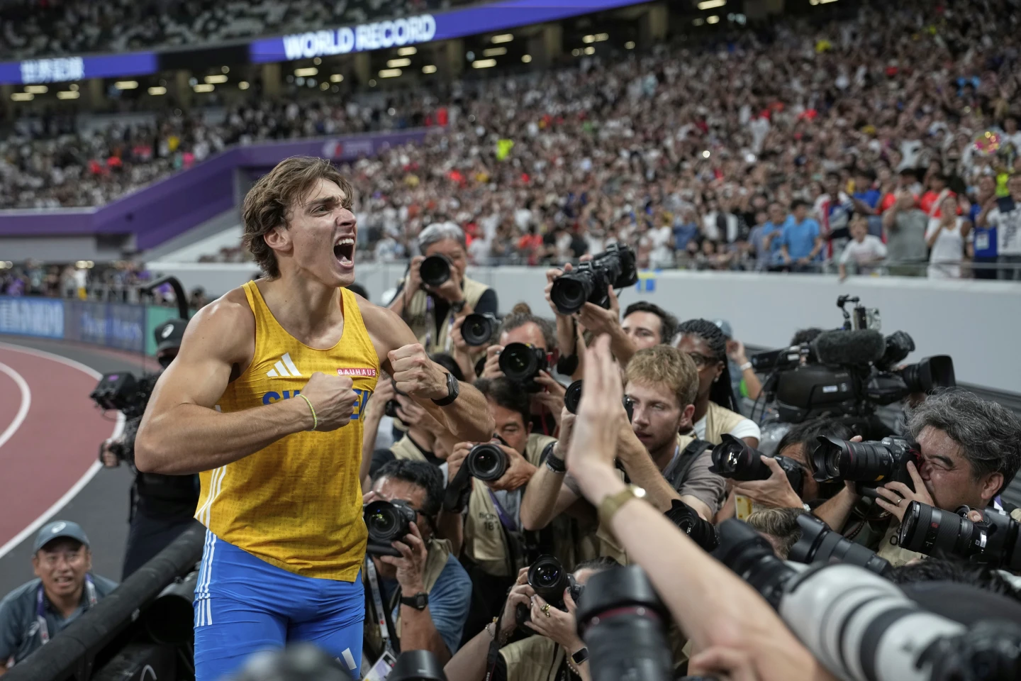 Duplantis lo logró en su tercer y último intento. La hazaña ocurrió más de media hora después de que las carreras del tercer día del campeonato de atletismo concluyeron por la noche. Pero nadie en la multitud de 53 mil personas se atrevió a irse mientras Mondo estaba presente.
