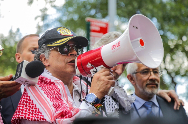 El presidente colombiano se sumó el viernes a una manifestación en Nueva York contra el primer ministro israelí Benjamin Netanyahu y propuso la creación de un ejército internacional para defender al pueblo palestino.