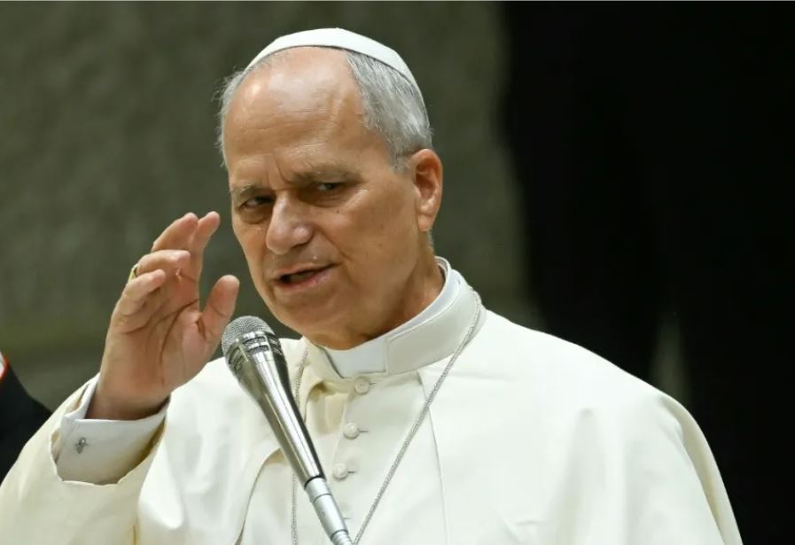 En la soleada plaza de San Pedro se desplegaron enormes retratos de los siete cuando el papa estadounidense-peruano salió de la basílica con una ceremonial sotana blanca.