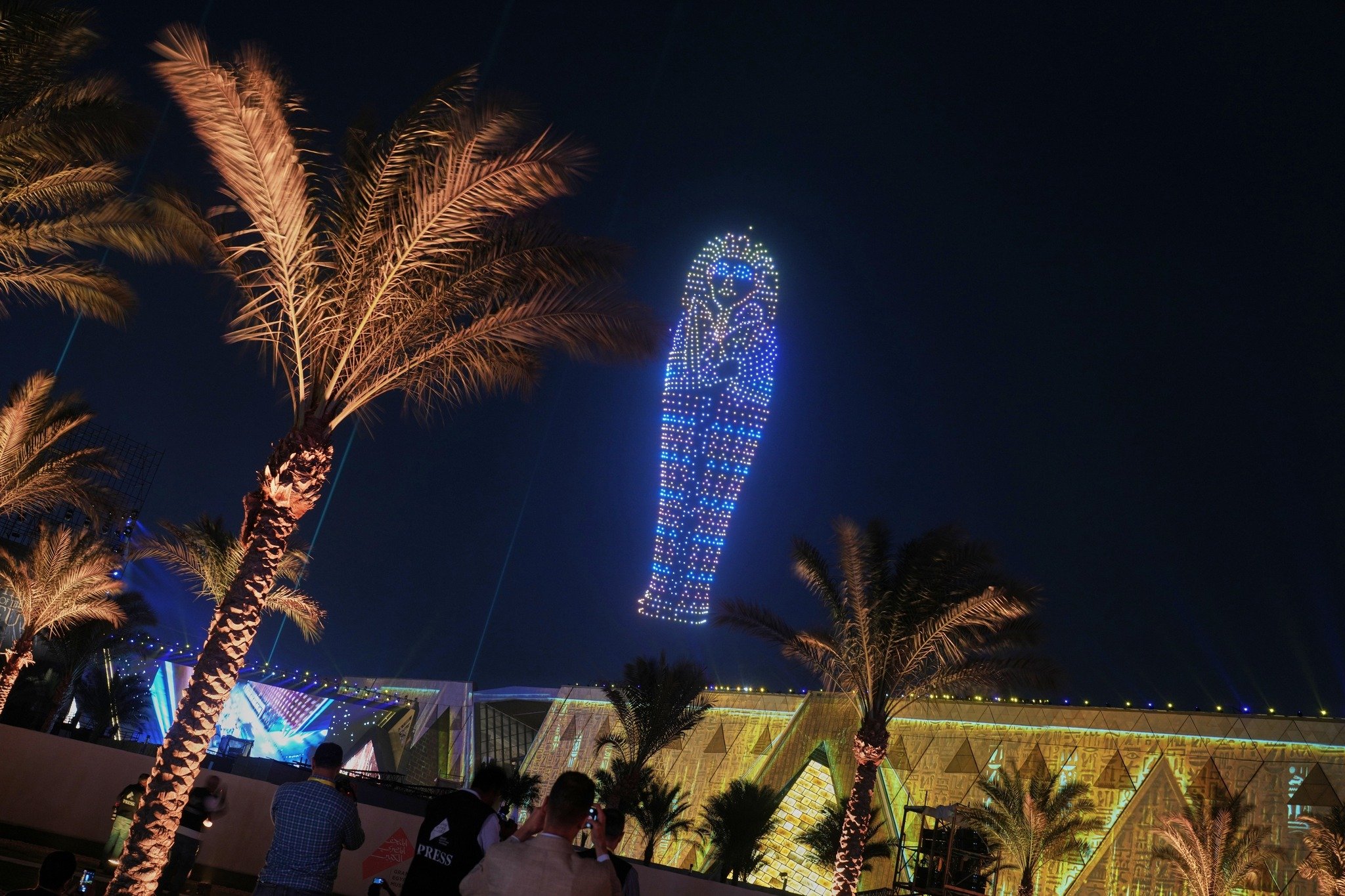 Los espectadores, entre los que se encontraba el presidente Abdel Fattah al-Sisi, se congregaron a última hora del sábado ante una enorme pantalla situada en el exterior del museo, que proyectaba imágenes de los lugares culturales más famosos del país mientras bailarinas ataviadas con relucientes ropajes de estilo faraónico agitaban orbes y cetros resplandecientes.