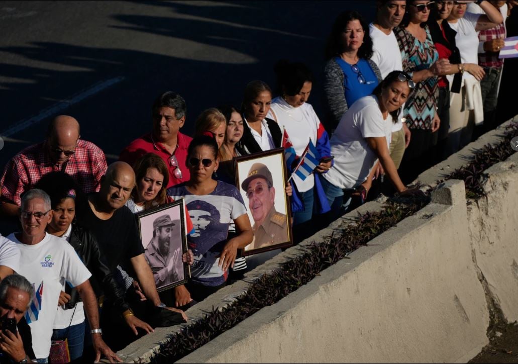 En el camino, a ambos lados de la vía, cubanos aplaudieron el paso de la caravana.
