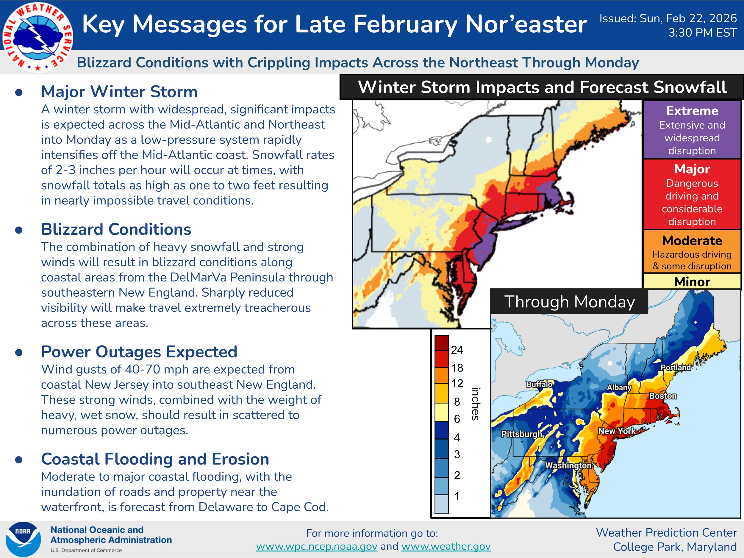 El Servicio Meteorológico Nacional (NWS) en Boston calificó de "tormenta potencialmente histórica y destructiva" en una publicación en X.