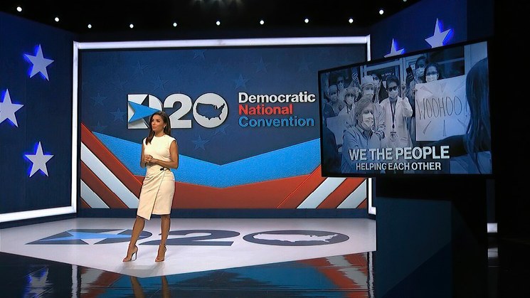 Y cada noche hay una estrella del mundo del espectáculo (aparentemente se supone que los políticos por sí solos no atraen suficiente atención) -esta noche fue la actriz Eva Longoria- y algunos intermedios musicales. Por cierto, en reconocimiento tácito de las figuras culturales -las que tienen mayor credibilidad que cualquier líder político- al inicio de la noche se exhibió un video con la voz de Bruce Springsteen cantando The Rising y escenas contrastando el Estados Unidos destruido de Trump con las de trabajadores esenciales y activistas en movimientos rescatando la esperanza en este país [https://youtu.be/6eMqC2l3tUA].