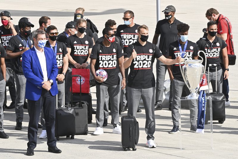 El club alemán advirtió a sus hinchas no apersonarse al aeropuerto de Múnich para prevenir contagios de coronavirus. Añadió que el plantel sería sacado de inmediato, limitándose la posibilidad de que los aficionados pudieran ver de cerca a los flamantes campeones de Europa. Sin hinchas eufóricos, el gobernador del estado de Bavaria Markus Söder dio la bienvenida al técnico Hansi Flick y a su equipo en la pista tras bajarse del avión.