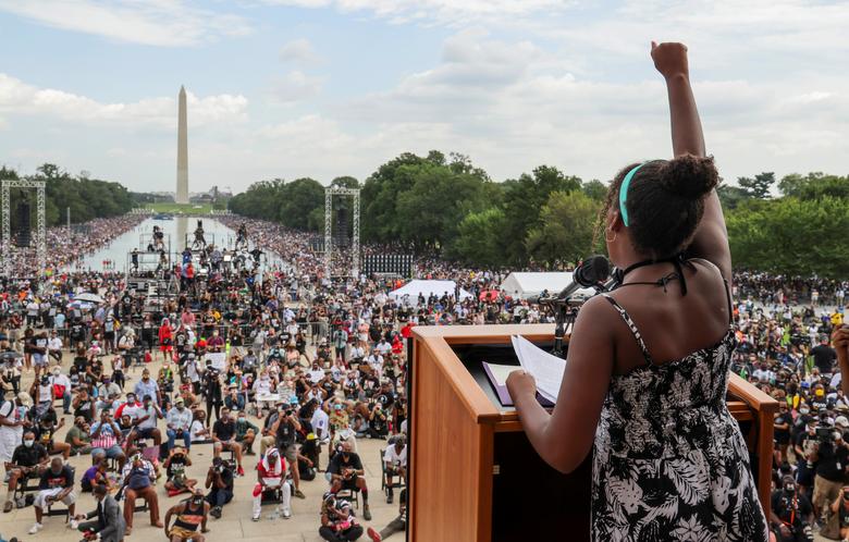 Desde el inicio la marcha parecía que iba a ser la mayor concentración política en Washington desde el estallido de la pandemia de coronavirus. Muchos participantes lucían camisetas con la imagen y palabras del difunto representante John Lewis, que, hasta su fallecimiento el mes pasado, era el último orador sobreviviente de la marcha original en Washington. Ese mitin en la capital estadunidense se volvió una de las concentraciones políticas más famosas en la historia de Estados Unidos y una de las mayores congregaciones en la urbe, con más de 200 mil personas demandando justicia social.