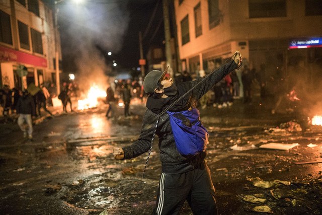 En noviembre de 2019, Dilan Cruz, de 18 años, quien participaba en una protesta antigubernamental, fue herido de muerte en la cabeza con una munición de perdigones disparada por un miembro del escuadrón antidisturbios de Bogotá.
