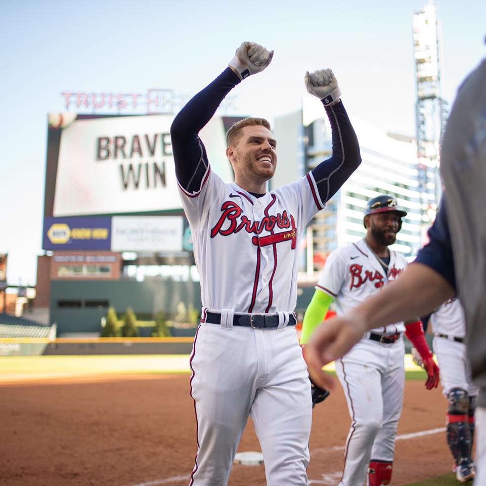 Había transcurrido mucho tiempo desde que los Braves de Atlanta ganaron una serie de postemporada, así que Marcell Ozuna quería asegurarse de grabar el momento. Adam Duvall también quiso sumarse a la tanda de “selfies”.