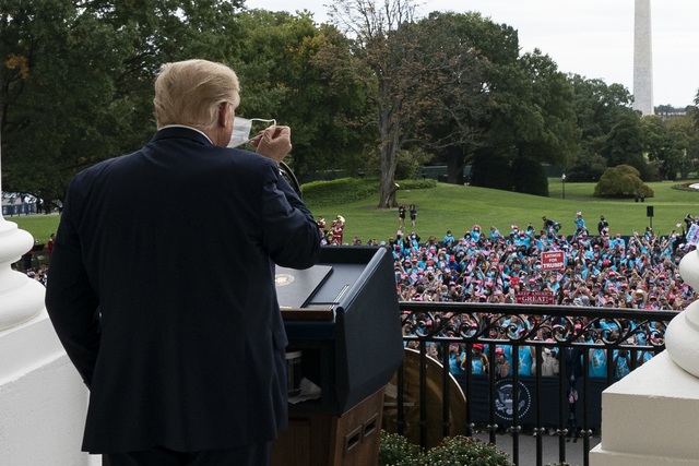 Trump emitió declaraciones desde un balcón de la Casa Blanca en un evento al que calificó como "una protesta pacífica por la ley y el orden", al que asistieron unos cientos de partidarios. Su aparición es vista como el primer paso antes de retomar en pleno su campaña electoral a partir de la próxima semana.