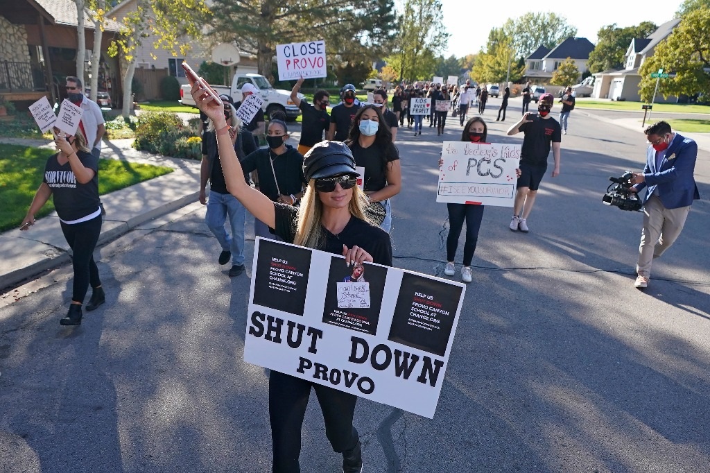Hilton organizó una manifestación en el parque ubicado cerca de la escuela Provo Canyon, en la que participaron cientos de personas que compartieron historias del maltrato que aseguran que sufrieron en esa o en otras instituciones similares para jóvenes conflictivos. Hilton exige que se cierre la escuela.