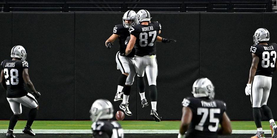 Derek Carr lanzó para 347 yardas y tres touchdowns al llevarse el duelo ante Patrick Mahomes, y los Raiders de Las Vegas contuvieron a la ofensiva de Kansas City para remontar en una victoria de 40-32 sobre los Jefes ayer, al continuar la jornada cinco de la NFL, que ha hecho ajustes en su calendario por casos positivos de coronavirus.
