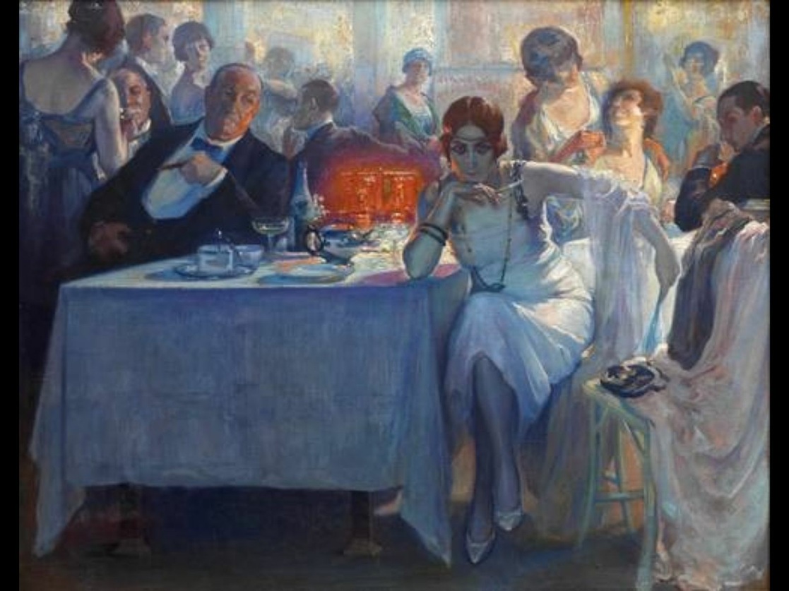 Entre las obras que citó el curador que pueden resultar violentas a la mirada actual se encuentran piezas de Antonio Fillol, como La bestia humana, donde una mujer llora desconsolada ante la indiferente mirada de la persona que ha pagado por sus servicios sexuales, o La rebelde, una muchacha gitana expulsada del poblado. Además, profundizó en las condiciones injustas y desiguales con las que trabajaban las mujeres artistas en esa época.
