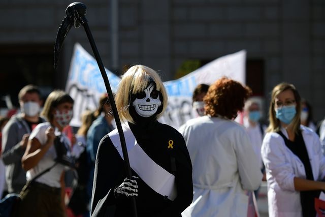 "Estamos pidiendo ayuda, porque no podemos dar a la gente los recursos que necesita para ser tratada durante esta pandemia de COVID", dijo Natalia Roses, médico que participó en una protesta en Barcelona en el primero de los cuatro días de huelga.