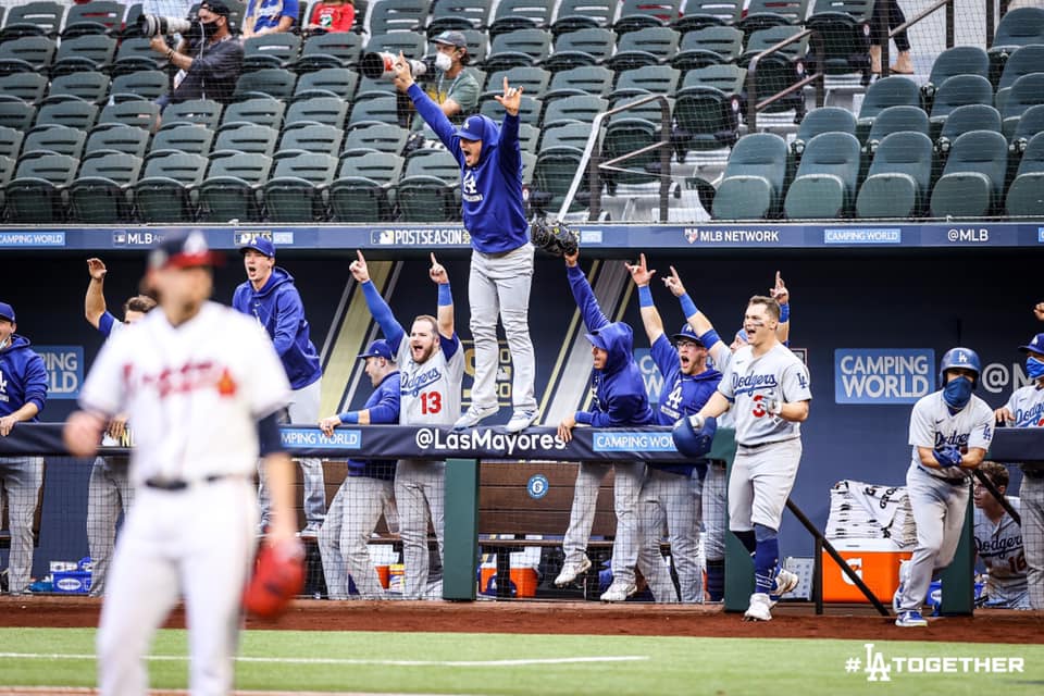 Los Ángeles, gracias a home runs de Joc Pederson, el puertorriqueño Edwin Ríos y Max Muncy, anotaron 11 veces frente a Kyle Wright y Grant Dayton para establecer un nuevo récord de anotaciones en una entrada en un partido de postemporada.