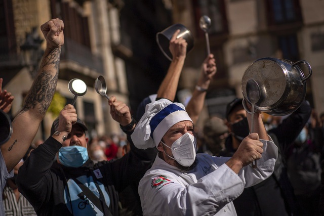 "Ya llevamos mucho tiempo sin poder ejercer y es imposible que cierren otra vez los bares y restaurantes. Nos vamos a morir de hambre", dijo Álvaro Sagreda, cocinero en un hotel de cinco estrellas.
