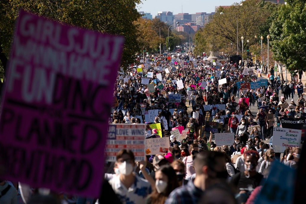 Miles de mujeres salieron a las calles en Washington y en otros lugares de Estados Unidos el sábado para protestar contra el presidente Donald Trump, exhortando a no otorgarle un segundo mandato y rechazando su nominación de una jueza conservadora a la Corte Suprema.
