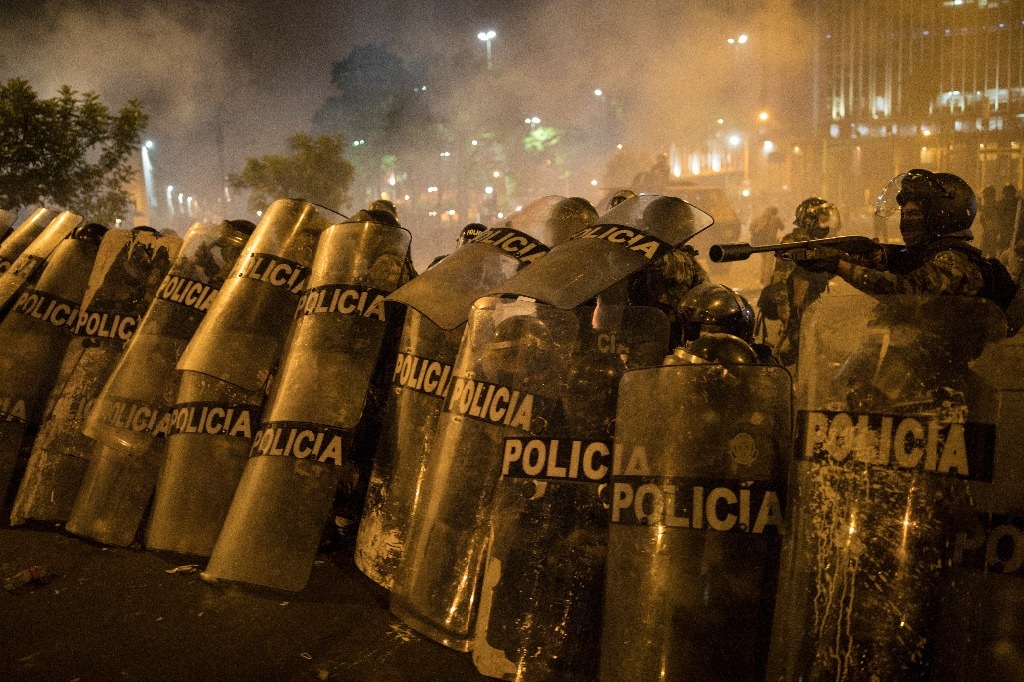 Por cuarta noche consecutiva desde la expulsión de Vizcarra, centenares de personas en Lima y algunas regiones del país han tomado las calles, con varios enfrentamientos con la policía que ha usado bombas lacrimógenas y disparos para dispersarlos.