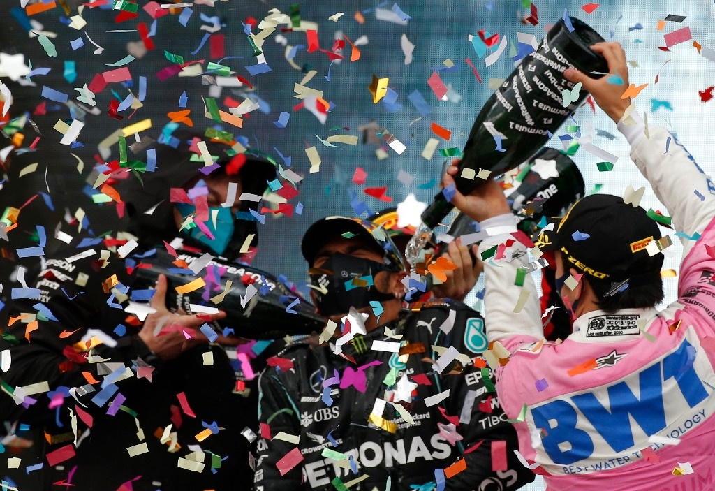 Al término de una carrera con muchos cambios, con trompos y salidas de pista, el británico estuvo acompañado en ese podio de Estambul por el mexicano Sergio Checo Pérez (Racing Point), que cruzó la meta en segunda posición, y por el alemán Sebastian Vettel (Ferrari), tercero, que subió al cajón por primera vez en una complicada temporada de 2020.
