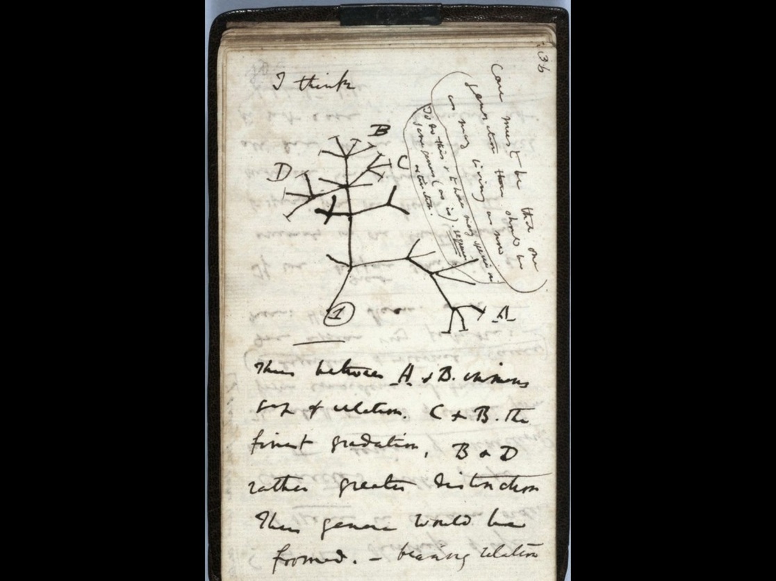 En el verano de 1837, cuando regresó tras haber dado la vuelta al mundo a bordo de un buque científico de la marina británica, esbozó en su cuaderno de notas un árbol de la vida que constituye la base de su teoría de la selección natural.
