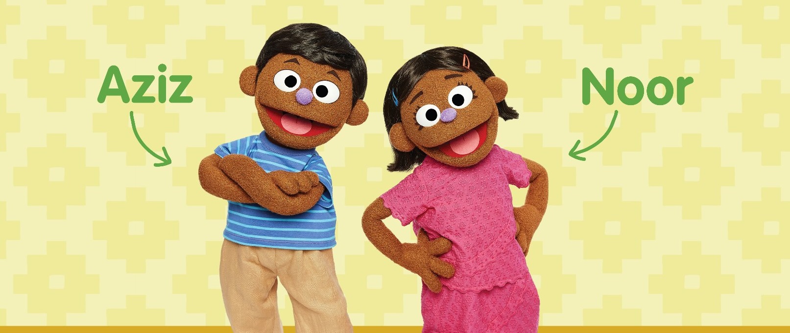 Sesame Workshop describió a Noor como una niña apasionada y curiosa a la que le encanta inventar nuevas reglas divertidas para los juegos, mientras que su hermano es un narrador cuya creatividad, a veces, puede distraerlo de sus tareas diarias.