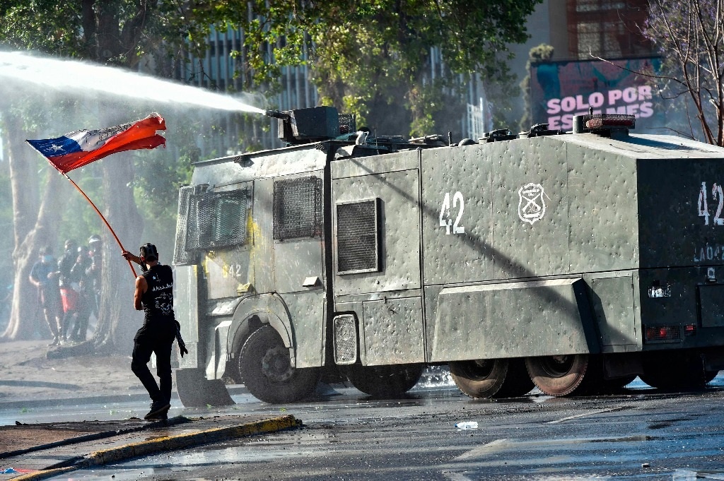 “En su trabajo por restablecer el orden público, personal policial de Control de Orden Público detuvo a 30 individuos en el contexto de desórdenes graves ocurridos en la Alameda”, la principal arteria de Santiago, informaron Carabineros a través de Twitter.