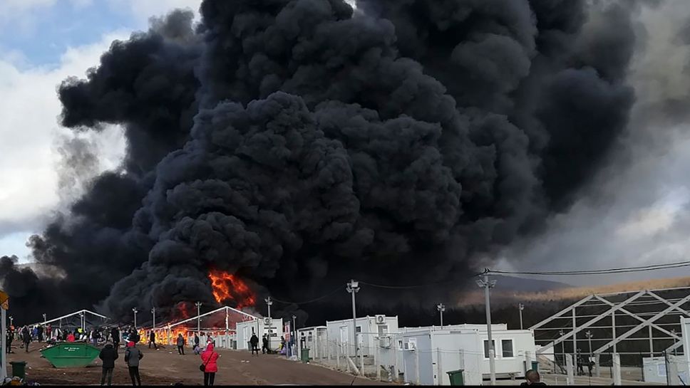 Una nube de espeso humo negro se elevó desde el campamento de carpas de Lipa, cerca de la frontera con Croacia, y que albergaba unos mil 200 migrantes. Se vio a residentes huir por el pánico, pero no se reportaron heridos de inmediato.
