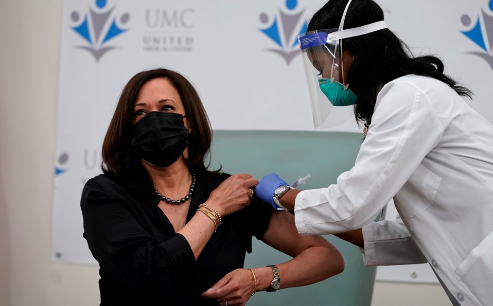 A Harris le administraron la vacuna de la empresa biotecnológica Moderna, la segunda que ha obtenido la autorización de emergencia por parte de las autoridades de EU, en el United Medical Center, situado en una de las áreas más humildes del sureste de la capital.