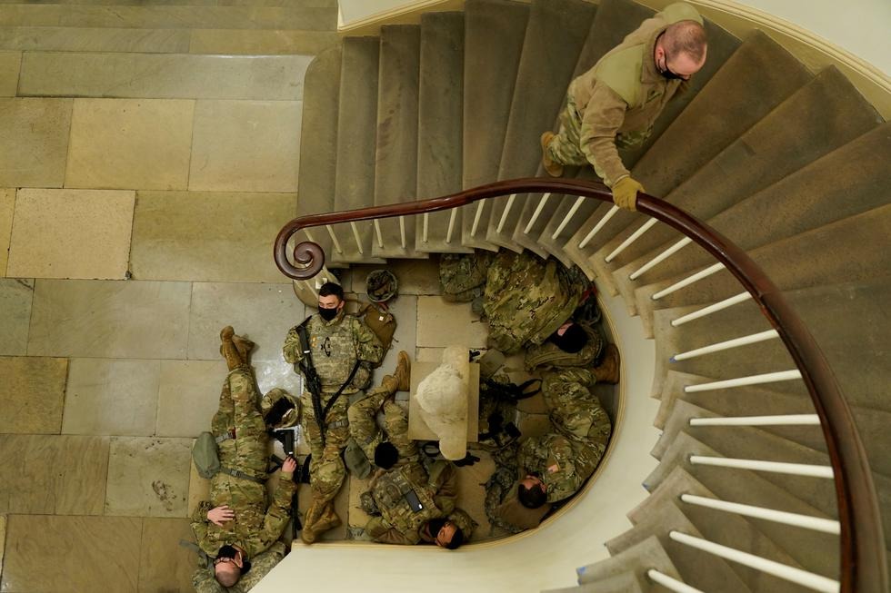 Por primera vez desde la Guerra Civil (1861-1865), varios centenares de soldados fueron acuartelados en el interior del Capitolio, donde tuvieron que dormir en los suelos y pasillos de mármol, rodeados de la suntuosidad de la sede legislativa.