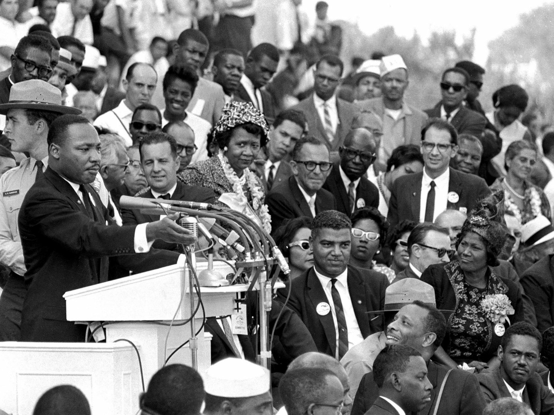 La marcha culminó en uno de los momentos más indelebles del movimiento por los derechos civiles, el discurso Tengo un sueño de Martin Luther King Jr. frente al Lincoln Memorial. La familiar escena no podría contrastar más con la reciente revuelta en el Capitolio. Aquí, una masa humana es congregada con el espíritu pacífico del líder del movimiento.