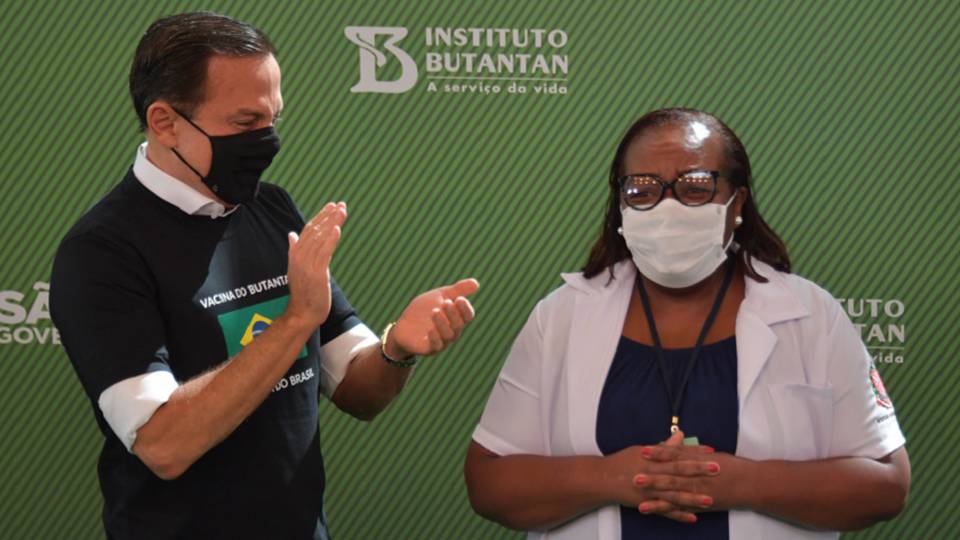 La protagonista del pinchazo, Mônica Calazans, de 54 años, lleva ocho meses en primera línea del combate contra el coronavirus y tiene perfil de alto riesgo por tener obesidad, ser hipertensa y diabética. Calazans ha sido vacunada en el Hospital de las Clínicas de Sao Paulo en un acto con el gobernador estatal, João Doria.