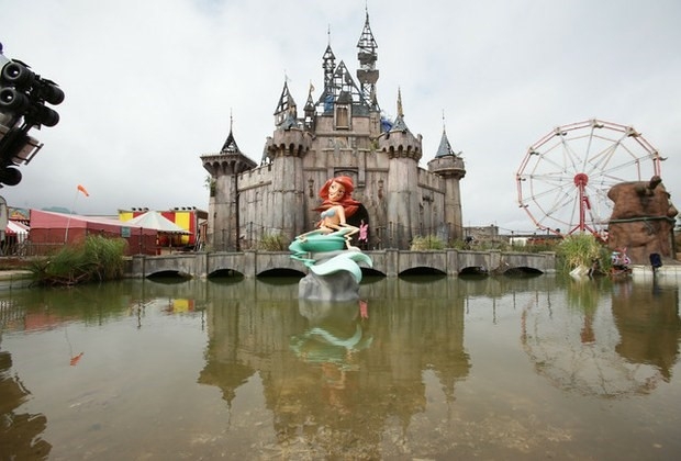 Dismaland, que abrió sus puertas el 22 de agosto, reunía obras de Banksy y unos cincuenta artistas, como los británicos Damien Hirst y David Shrigley, los españoles Escif y Paco Pomet y la estadunidense Jenny Holzer.