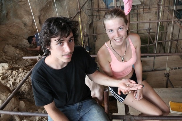 El jueves por la tarde, Camille, de 16 años, y Valentin, de unos 20, trabajaban con un pincel cuando encontraron el diente, contó Viallet.