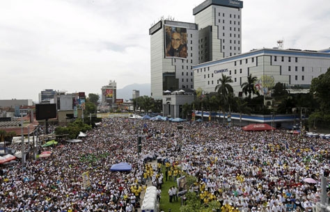 Participé como comentarista de Telesur. El equipo se ubicó en una azotea de un edificio aledaño a la plaza con una perfecta visión periférica que nos permitía observar la ceremonia desde un lugar privilegiado. Muy temprano, los asistentes fueron llegando ordenadamente. Otros habían pernoctado, pues realizaron una vigilia pascual en medio de una persistente lluvia.
